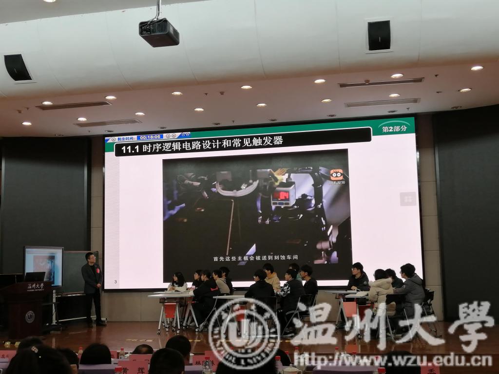 陈博老师的参赛课程是《可编程逻辑器件及应用》,主要以CPLD和FPGA为硬件载体,以硬件描述语言为工具,讲授可编程逻辑器件的应用方法和内在规律,陈老师的课程使学生了解数字系统电子自动化设计的基本流程,了解可编程逻辑器件的硬件结构、原理和特性,掌握数字系统的设计方法和设计手段。该课程以教育部“金课”的思想为指导,按照高阶性、创兴性、挑战度的“金课”标准设计教学全要素、执行教学全过程,取得很好的教学效果。