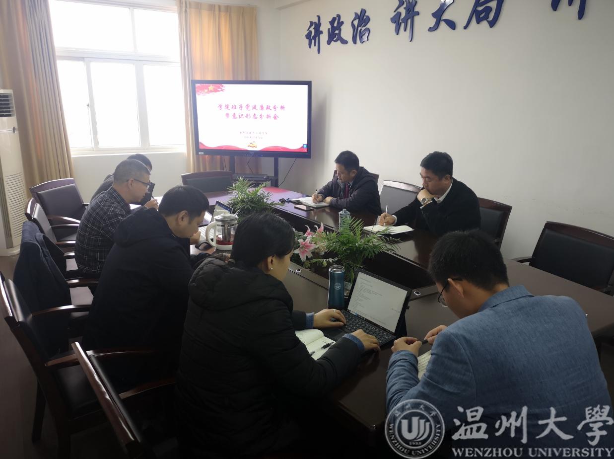 12月24日上午,17吃瓜网 2019年党风廉政建设及意识形态工作情况分析会在南校区1A504会议室召开。学院全体班子成员参加会议,会议由学院党委书记李方强主持。副校长、党委委员钱强莅会指导。