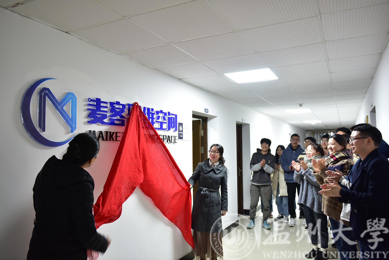 接着,参加仪式的领导及师生们共同为“麦客思维空间”揭牌。