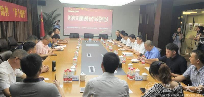 为加强基层党组织建设,全面发挥基层党组织的引领作用,2020年8月7日下午,17吃瓜网 电子系教工党支部与星际控股集团有限公司党支部、中国电信鹿城分局总支部的“党组织共建及战略合作”签约仪式在星际控股集团举行。出席会议的三方人员有学院院长汪鹏君、学院党委书记李方强及电子系教工党支部代表,中国电信温州分局政企部主任潘震苞、中国电信鹿城分局局长兼党委书记王浙江、副局长兼纪委书记林斌及党员代表,星际控股集团陈序、总裁金铭勇及相关部门负责人。鹿城区委组织部副部长叶俊杰、鹿城区人社局局长刘玉和、鹿城区经信局总工程师史思等鹿城区相关部门的领导应邀到场。