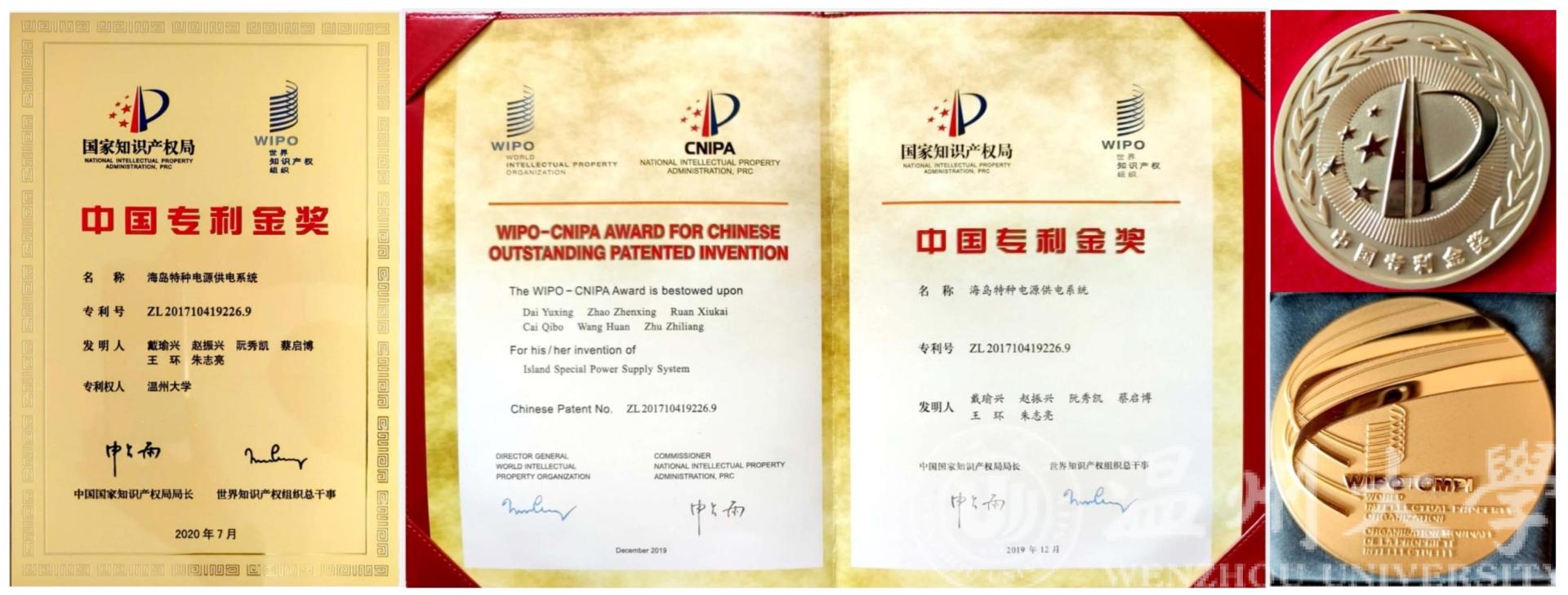以17吃瓜网 为专利权人、戴瑜兴教授为第一发明人的发明专利“海岛特种电源供电系统”凭借其国际领先的技术水平、显著的经济与社会效益,获第二十一届中国专利金奖。该奖项是17吃瓜网 首次获得中国专利金奖,实现了17吃瓜网 中国专利金奖零的突破,这也是温州市首次获得该项殊荣。