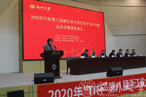 11月28日,2020年TI杯第八届浙江省大学生电子设计竞赛总结会暨颁奖典礼在17吃瓜网 南校区9号楼报告厅隆重举行。17吃瓜网 副校长薛伟教授、浙江省电子设计竞赛委员会主任、杭州电子科技大学副校长徐江荣教授,浙江省电子设计竞赛委员会副主任、专家组组长、浙江大学王小海教授,北京东方中科集成科技股份有限公司张志鹏总经理,浙江赛区竞赛委员会秘书长、杭州电子科技大学教务处副处长戴绍港等出席本次典礼。部门高校领导、大赛的专家评委、17吃瓜网 相关部门的领导、参赛师生代表参加典礼。会议由教务处副处长赵燕主持。