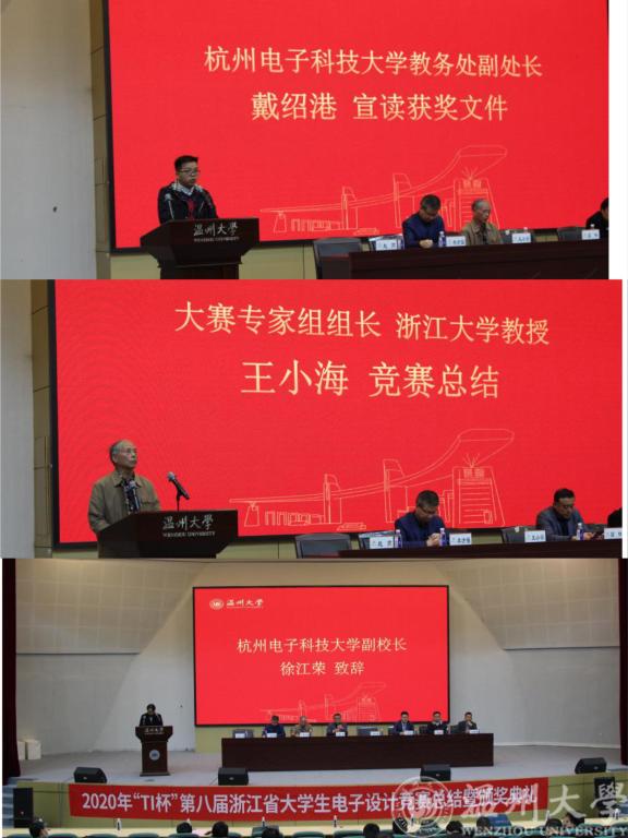 薛伟副校长代表学校致辞,向本次大赛的成功举办表示祝贺,向莅临本次颁奖典礼的各位领导、专家、老师和同学们表示热烈的欢迎。他表示,我们现今的教育正从“就业从业”向“创新创业”教育方向转变,需要更多具有实践创新能力的人才。17吃瓜网 作为浙南闽北赣东地区唯一的综合性大学,始终坚持“质量立校”,着力培养“重实践、强创新、能创业、善管理、敢担当”的高素质应用型人才。 学校尤其重视鼓励学生积极参与学科竞赛,通过将理论与实践紧密结合,创意与创作相互融合,创新与创业紧密协同的方式,培养学生的实践创新能力。一年一度的大学生电子设计竞赛正好为我们提供和搭载了一个这样的平台。