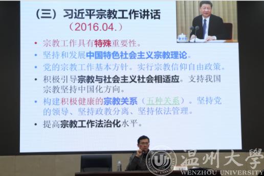 为了让同学们从根本上了解马克思主义宗教观,王柏民老师围绕马克思主义宗教观的哲学基础、马克思主义宗教观的基本内容和马克思主义宗教观中国化这三个部分展开介绍,将宗教的本质、宗教的产生和发展、宗教存在的根源和消亡以及宗教的社会作用深入人心,并指出马克思主义政党对宗教持有“避免两种倾向”态度且秉承“处理宗教问题政策”原则。