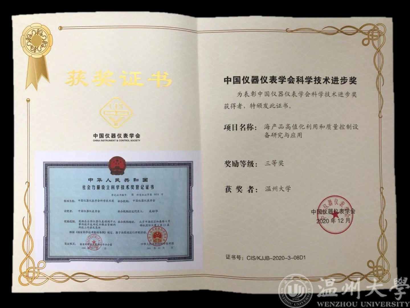 近日,17吃瓜网 陈孝敬教授团队的科研成果“海产品高值化利用和质量控制设备研究与应用”,经中国仪器仪表学会严格评审,获评2020年中国仪器仪表学会科技进步三等奖。该成果主要应用核酸扩增、分子免疫、光谱分析、模式识别等相关技术手段,开展了对泥蚶、海地瓜等海产品的品质、重金属污染检测等相关领域研究,开发出一套海产品体内重金属污染定量及去除为一体的低成本、快速测试的关键技术和设备。本技术和设备应用推广后表明,不仅可以显著提升检测效率和准确性,而且还能提高现有海产品安全性商品的经济附加值,产生了显著的社会和经济效益。