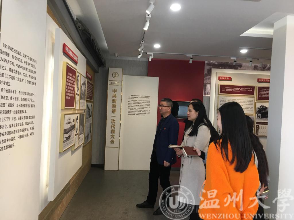 首先,支部党员参观了中共浙南一大纪念馆。纪念馆分上下两层,一楼为展厅,二楼为电化教室。展厅分为中共浙南一大展厅、温州独立支队展厅、红十三军展厅,详细展示了温州光辉的革命历史。展厅内古朴典雅,庄严凝重。在这里,我们见到了中共浙南第一次代表大会通过的决议案,见到了开展武装斗争使用的矛枪,见到了地下交通员传送情报的食盒匣,最触动人心的是那些革命烈士的图像和他们的革命事迹。一件件实物,一幅幅图片,让参观者重温了那段不屈不挠、不畏艰辛、不能忘却的红色记忆,深刻感悟到了革命烈士精神的崇高与伟大。