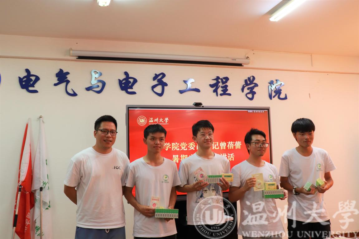 最后,学工办主任廖晓安老师向同学们补充介绍了一些中暑症状,并叮嘱同学们切勿靠近水域游泳。随后,由廖老师代表学院向同学们发放了一些藿香正气水、风油精、驱蚊手环等防暑、驱蚊用品,帮助同学们更好开展暑期社会实践工作。