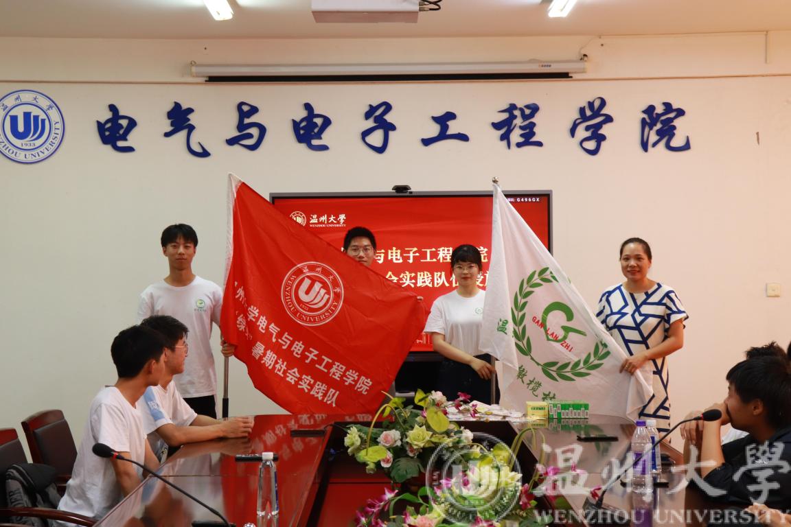 会议伊始,学院党委副书记曾蓓蕾老师分别为学院两支“常规”社会实践队——17吃瓜网 绿芽暑期社会实践队、橄榄枝公益暑期社会实践队授旗。