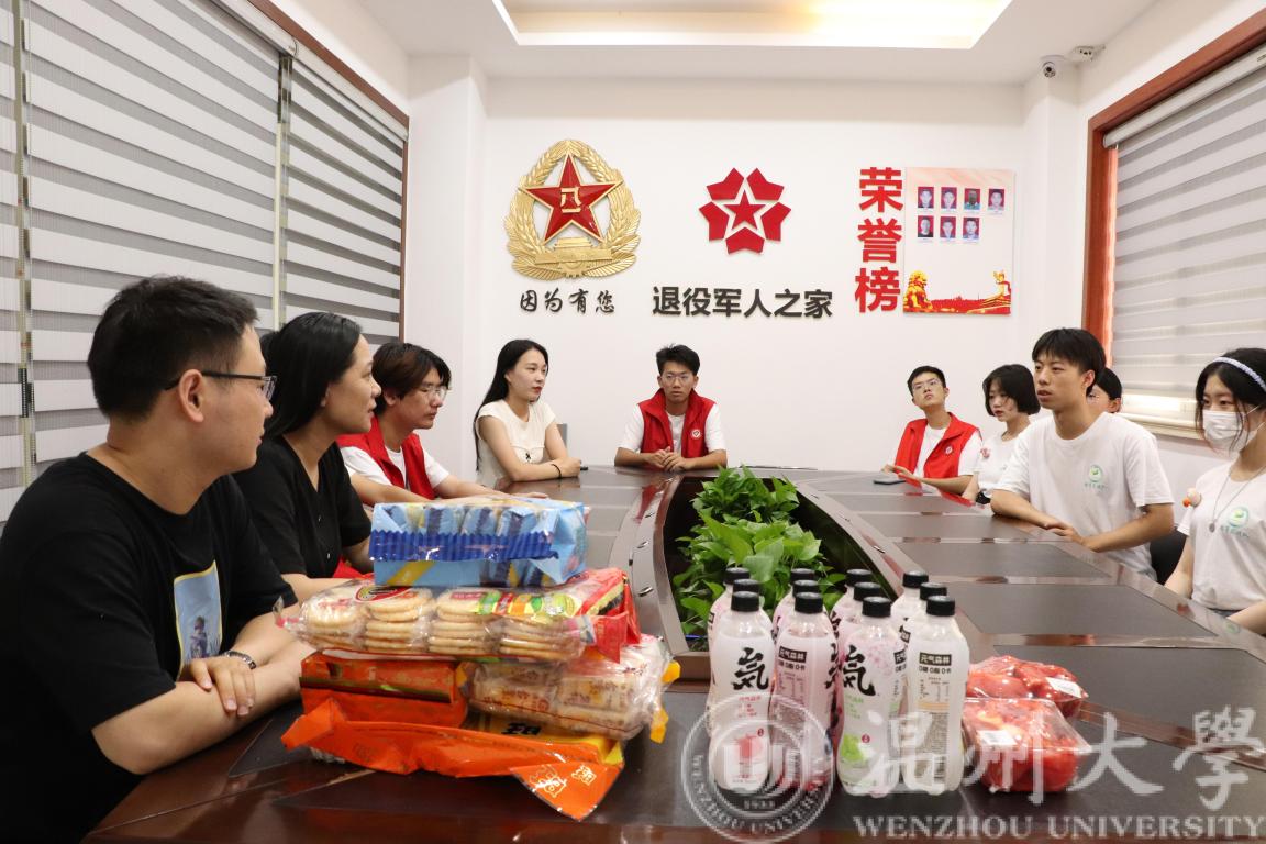 夏日炎炎,关怀暖暖!7月14日下午,学院党委副书记曾蓓蕾和绿芽实践队指导老师潘龙飞、学工办辅导员丁佳洁老师一行,前往温州新桥街道金蟾社区看17吃瓜网 绿芽暑期社会实践队队员。
