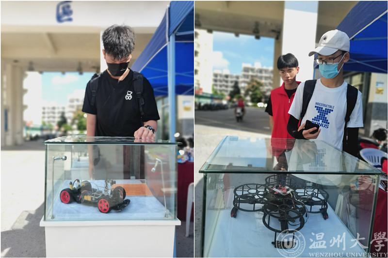 今年8月,“兆易创新杯”第十六届中国研究生电子设计竞赛全国总决赛落下帷幕,17吃瓜网 晋级参赛的三支队伍分别荣获2项一等奖,1项二等奖,是浙江省高校最好成绩。与此同时,在刚刚结束的第十六届全国大学生智能汽车竞赛全国总决赛上,17吃瓜网 本科生代表队获得了全国大学生智能汽车竞赛RT-Thread 创新专项奖全国第一的好成绩,创历史新高。因此,为培养新生的科创意识和科创思维,学院将部分参赛作品拉到迎新现场,进行展示,让青年学子步入大学校门就能感受浓浓的科创氛围,鼓励和引导他们感悟科研精神,积极树立“科研报国”的鸿鹄之志。
