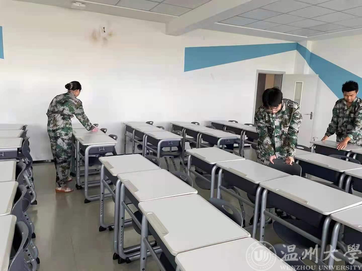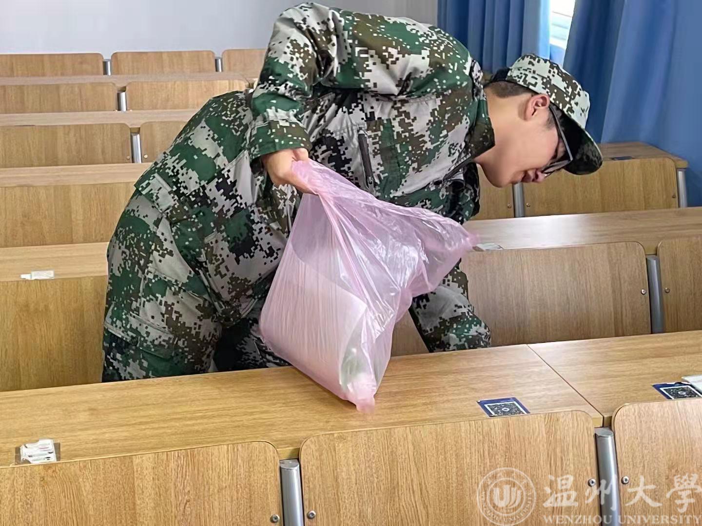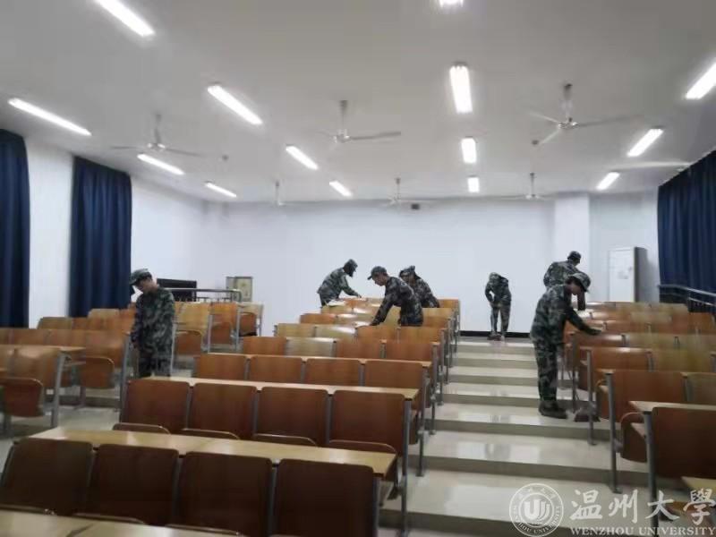 上午8:00,2021级军训的新生们统一穿上军训服,各自带着扫把、畚箕、抹布等清洁工具,早早地来到了学院办公楼。在班长的组织下,各位新生严格遵守纪律,有序地进行学院公共区域卫生清理、自行车摆放、教室卫生清理等活动。为不影响公共场地的正常使用,同学们必须争分夺秒,早点完成;同时做到保持安静,不影响正在上课的老师和同学。同学们辛劳打扫的身影遍布整个学院。新生们不仅将汗水挥洒在训练场上,也留在了学院的每个角落。