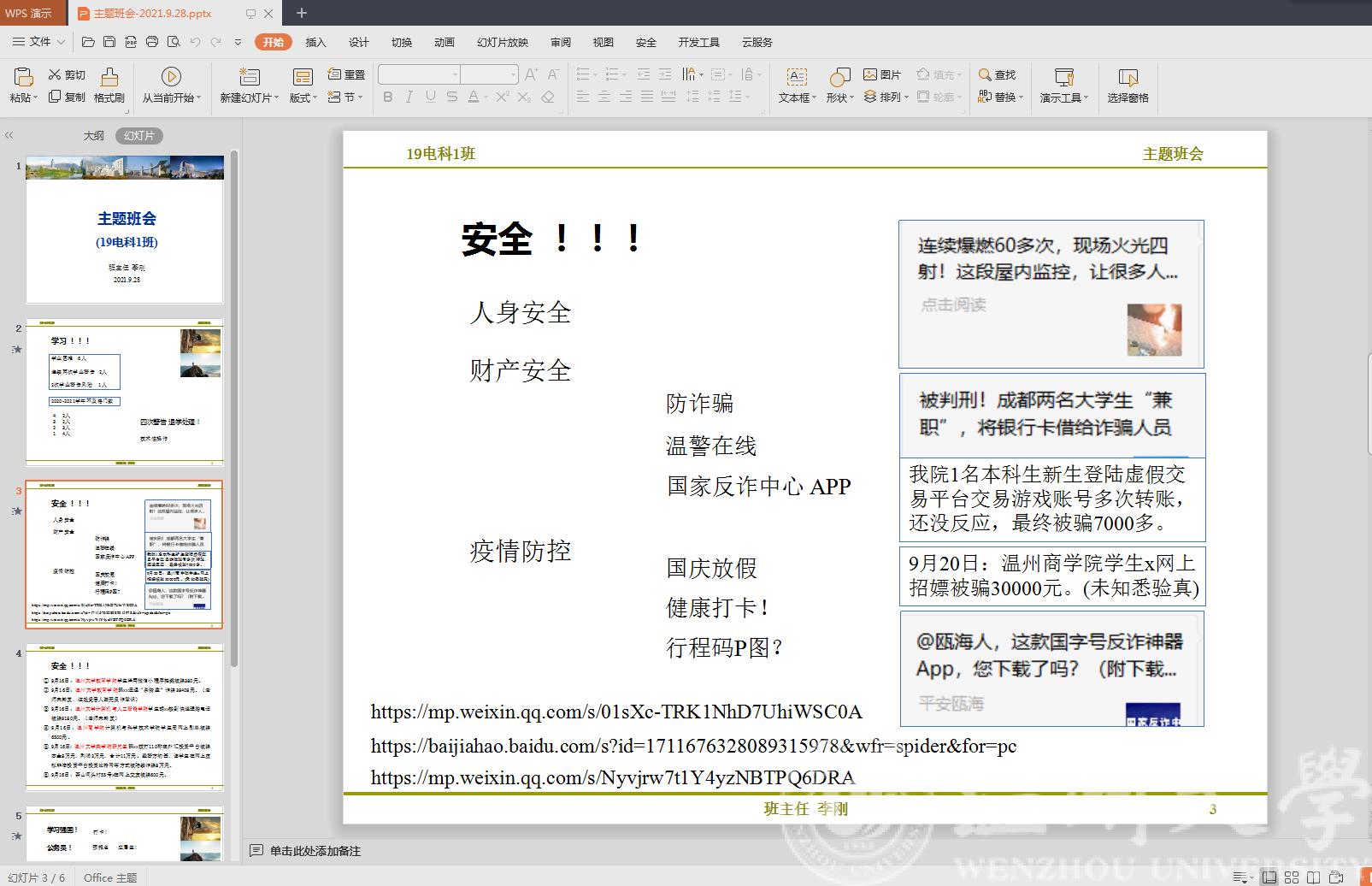 在班会上,各班级班主任再次向同学们强调了“温警在线”中“验真”小程序的使用方式,现场督促同学们下载并安装“国家反诈中心”APP。并通过讲解学生群体中多发的被骗案件类型,为同学们敲响警钟。最后,各位班主任就如何鉴别和预防诈骗进行讲解说明,并对受骗后如何应急处理进行细致讲解。