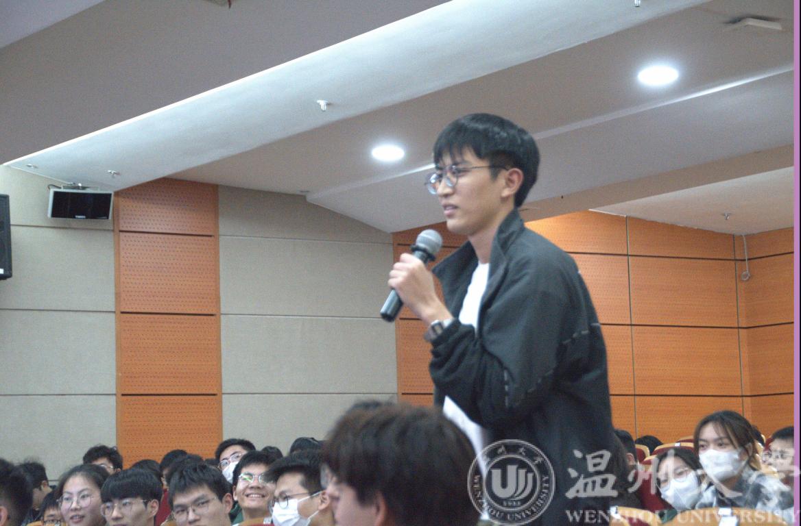 随后,7位毕业班同学依次上台汇报,在高校及专业选择、备考资料推荐、时间规划和管理、线上复试经验等方面分享了切身体会,鼓励学弟学妹们要瞄准考研目标,坚定自己的信念。多位学长学姐都提到了在复习时间的安排上,可以较早开始准备专业课的学习,其中吴鑫涛同学强调学习效率是第一位,要注重有质量的学习,找到让自己效率高的方法;倪世杰同学指出选择和努力一样重要,要做好正确的选择才能少走弯路;谢歆哲同学提出要戒骄戒躁,坚定自己的选择,不盲从各种考研博主和公众号,按着自己的步伐稳步向前。与此同时,学长学姐们也鼓励大家勇于报考985、211等实力更强的学校,要对温大的招牌有信心。学长学姐们都不约而同提到了竞赛的重要性,建议大一大二的同学多参加各类竞赛,不仅为自己积攒经验,也是在复试面试中尤为加分的一项。