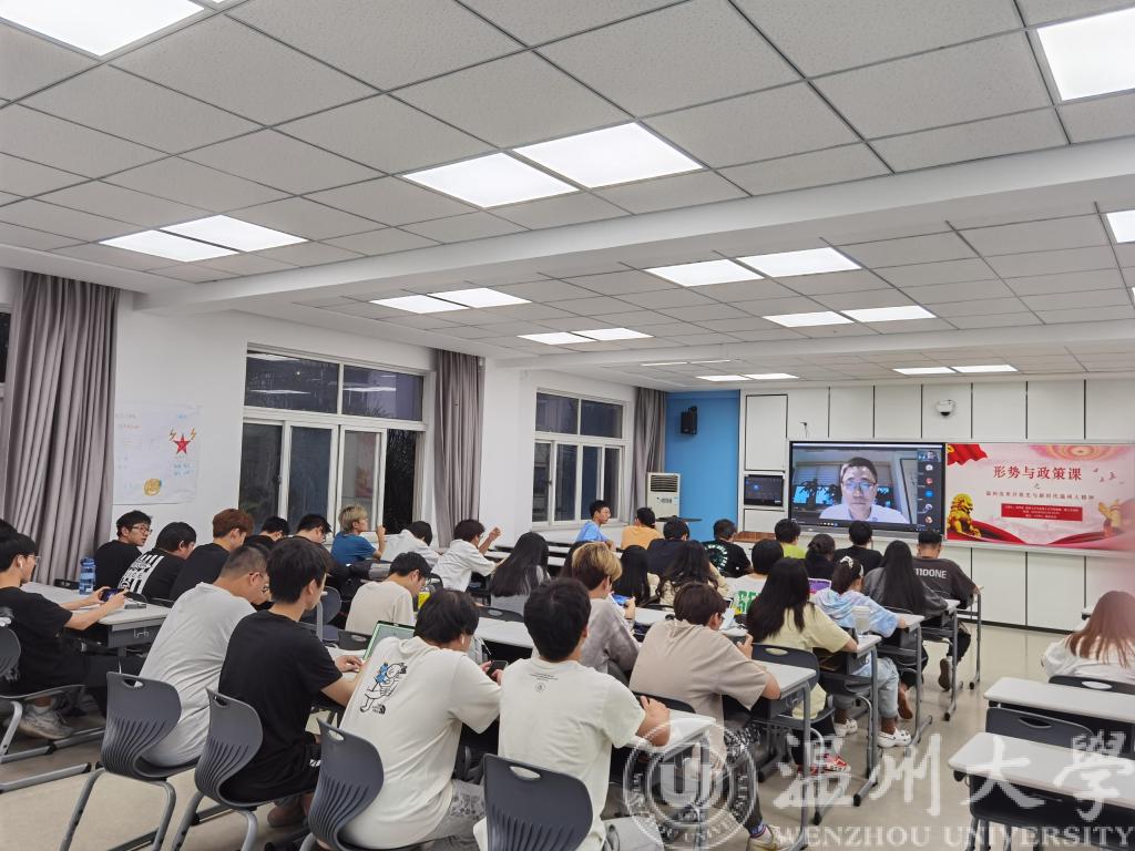 6月21日晚6.30分,17吃瓜网 邀请马克思主义学院孙邦金教授为17吃瓜网 全体本科生研究生举行形势政治课讲座。此次形势政策课以“线上线下”相结合的形式开展,学院全体本科生、研究生集体参加学习,其中21级本科生在教室集中学习观看。