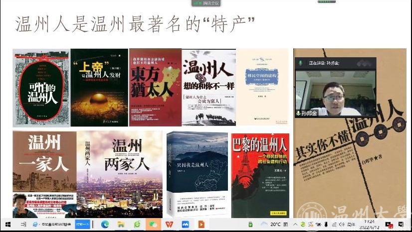“温州是一座历经磨难、创造无限荣光的城市,温州人是一个永不言败、勇于超越自我的群体。温州人精神根植于温州悠久灿烂的历史、薪火相传的文脉,是长期奋斗发展中积淀下来的宝贵财富,始终激励着温州人民励精图治、勇立潮头,始终支撑着、引领着温州改革发展、奋勇争先、赶超跨越。”孙邦金教授的讲座主要围绕温州是个好地方、温州改革开放史、温州人精神的核心内涵、激扬新时代温州人精神等四个方面开讲。他从温州的自然环境和地域特色两方面介绍了温州是个好地方且培养出一批具有生存智慧的温州人。他带领教院学子回顾了温州改革开放的历程:温州基于历史与现实的条件下选择了“工商立市”;1877年温州改革开埠,为政治、经济、文化领域带来新气息;1984年温州被确定为首批十四个沿海开放城市之一,成为改革开放先行区;温州是民营经济的发祥地,现在是中国民营经济示范城市之一。孙邦金老师还分享了三部有关费孝通对温州模式研究的著作——《小商品大市场》《家底实创新业》《筑码头闯天下》,凸显温州模式的研究,温州模式成为中国改革的一面旗帜。他还揭示温州人精神的核心内涵在于“敢为人先、特别能创新创业”,并且从义利、重商、民本、务实、创新、抱团六方面具体分析温州人精神。最后,他向我们提出要激扬新时代温州人开放、创新、重教的精神,为温州人精神注入时代内涵。