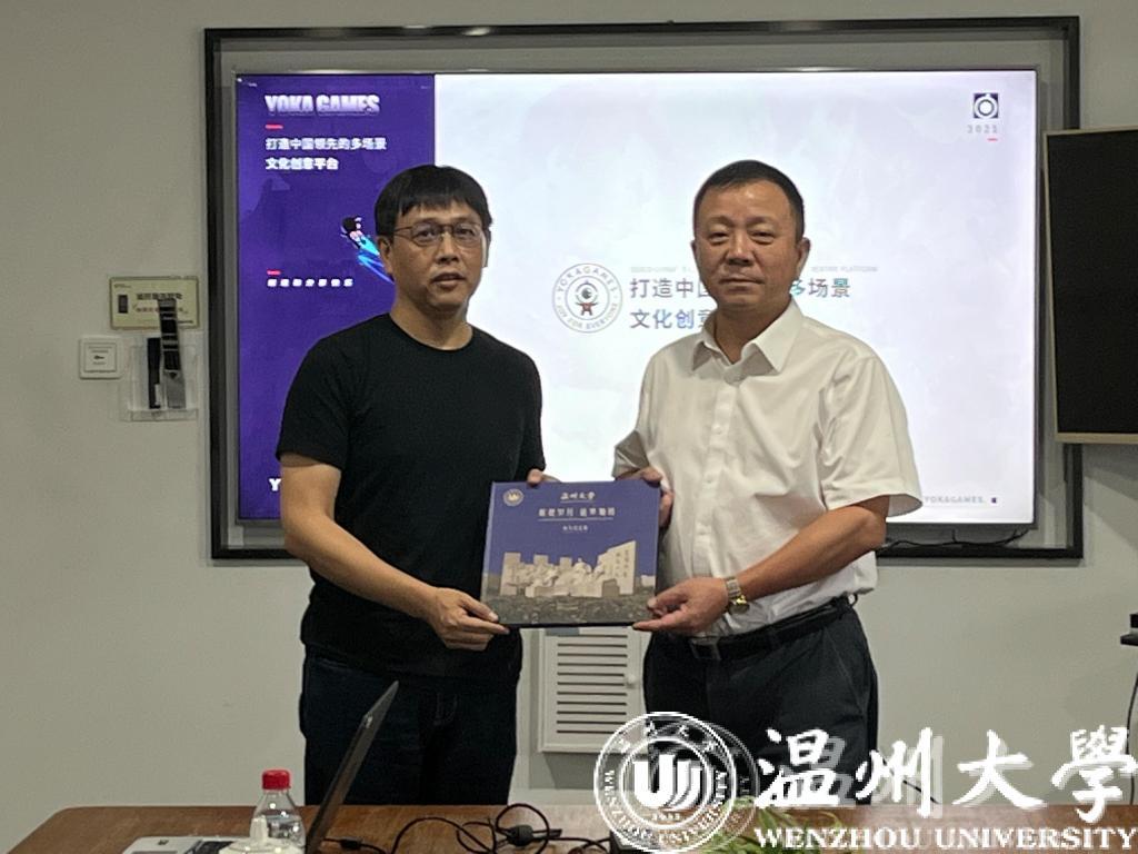 谢树华充分肯定了杭州游卡网络技术有限公司取得的成就,向潘恩林表达了母校真诚的问候和关怀,并介绍了学校近年来的建设、发展成就和学校90周年校庆筹备工作情况。他指出,校友是学校不可替代的宝贵财富,校友的成长,促进了母校的发展,校友的成绩,彰显了母校的业绩。学校高度重视校友工作,搭建各类校友平台,宣传温大校友故事,促进校友与学校共同发展,提升学校影响力和美誉度。谢树华代表学校诚挚邀请潘恩林校友常回母校看看,希望校友企业与学校加强互动交流,开展多方面的合作。
