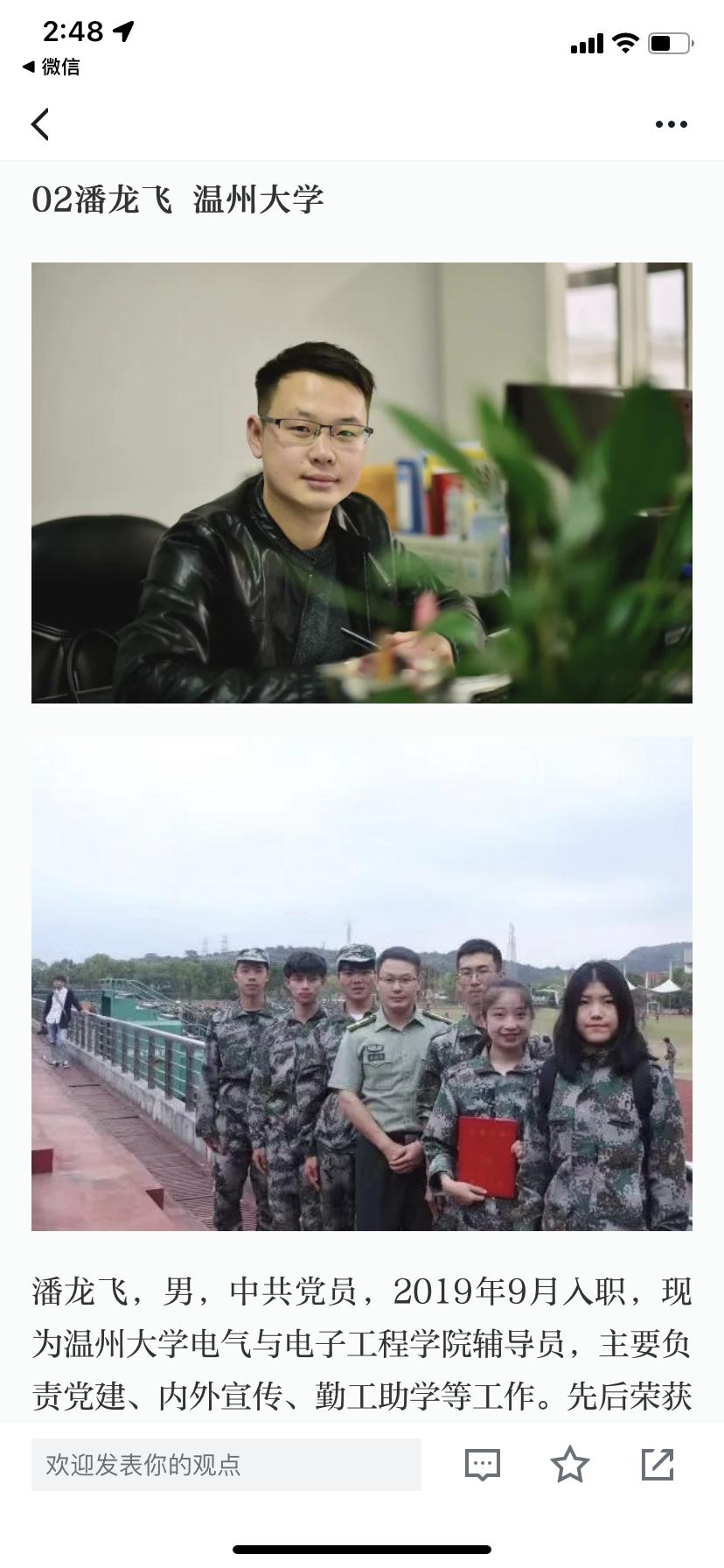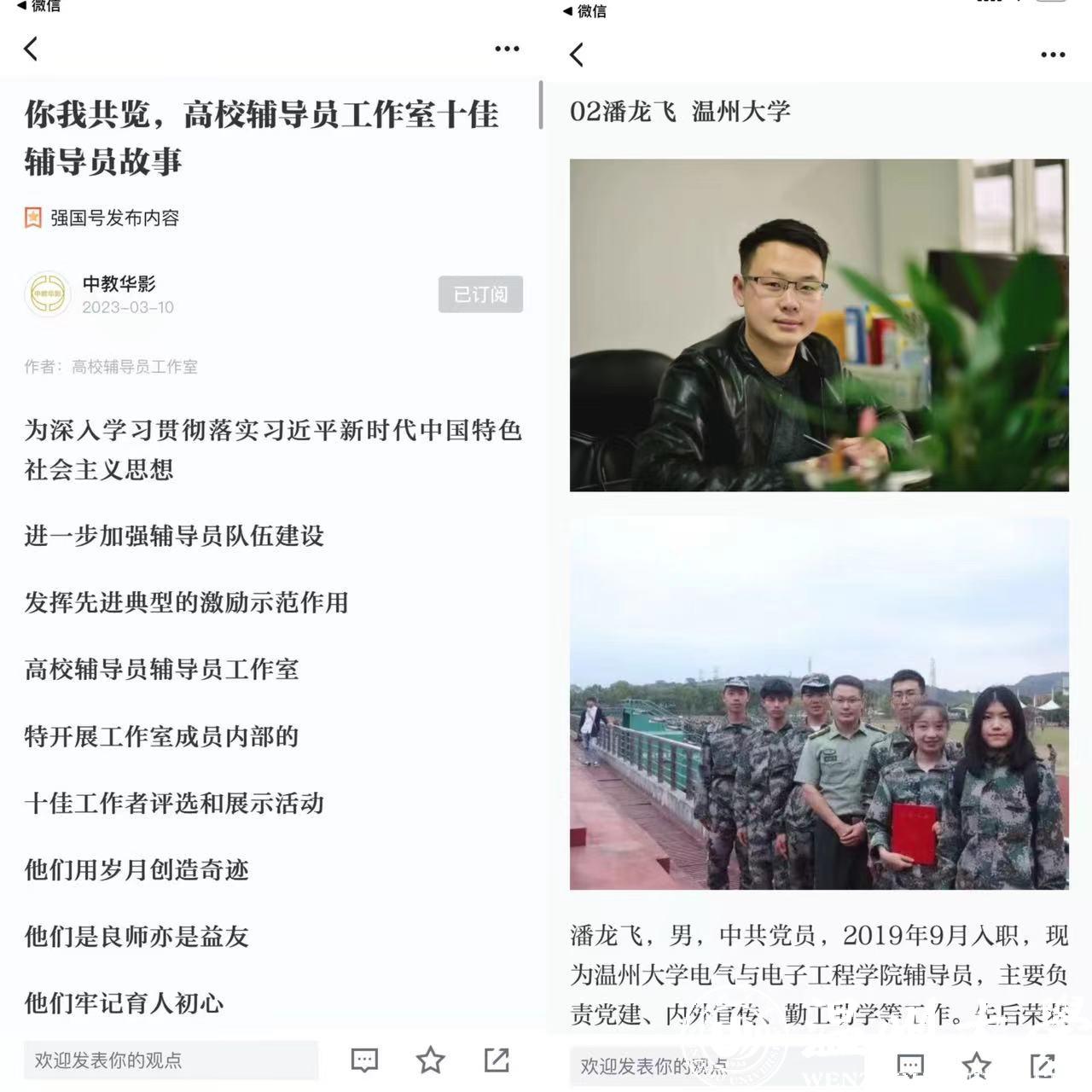 3月10日,学习强国刊发了一篇名为《你我共览,高校辅导员工作室十佳辅导员故事》的文章,该篇文章系全国高校辅导员辅导员工作室,为深入学习贯彻落实习近平新时代中国特色社会主义思想,进一步加强辅导员队伍建设,发挥先进典型的激励示范作用,进行的十佳工作者评选和展示活动,17吃瓜网 辅导员潘龙飞也在其中。
