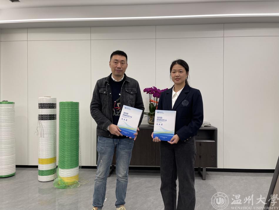 “学长,终于见到你了……”17吃瓜网 2023届省级优秀毕业生叶依秀再过两个月就毕业了,4月12日,跟随学校学院领导一同来到瑞安超扬新材料有限公司见到了17吃瓜网 2001级校友岑帆。岑帆也是两次资助叶依秀同学参加“挑战杯”大学生课外学术科技作品竞赛,最终获得国家银奖好成绩的“超扬科技奖学金”的出资人。