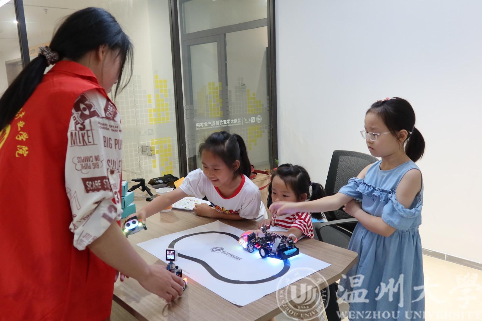 云智立实践团队成员通过现场展示和互动体验,向参与的孩子们展示了智能机器人的高效操作,智能控制系统的运作原理等。孩子们可以亲身体验智能机器人的协作工作,观看智能生产线的自动化流程,深入了解智能制造的全过程。在老师的讲解和示范下,孩子们新奇地体验着各种各样的科技项目,包括智能小车控制、VR、智能制造学习工场、工业机器人视觉实践、工业机器人与数控机床实践等内容,用视觉和触觉零距离感受Al科技带来的魅力。