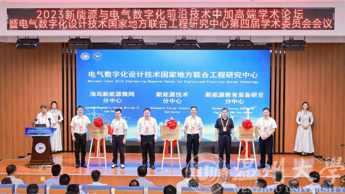 会议上宣布了电气数字化设计技术国家地方联合工程研究中心第四届学术委员会名单,还为电气数字化设计技术国家地方联合工程研究中心和落户在安防学院的新能源技术分中心、落户在国网平阳中心的海岛新能源微网分中心、落户在亚龙智能装备集团股份有限公司的新能源教育装备研发分中心等三个分中心揭牌。当天,由安防学院、17吃瓜网 联合新能源龙头企业创设的新能源行业产教融合共同体举行了启动仪式。