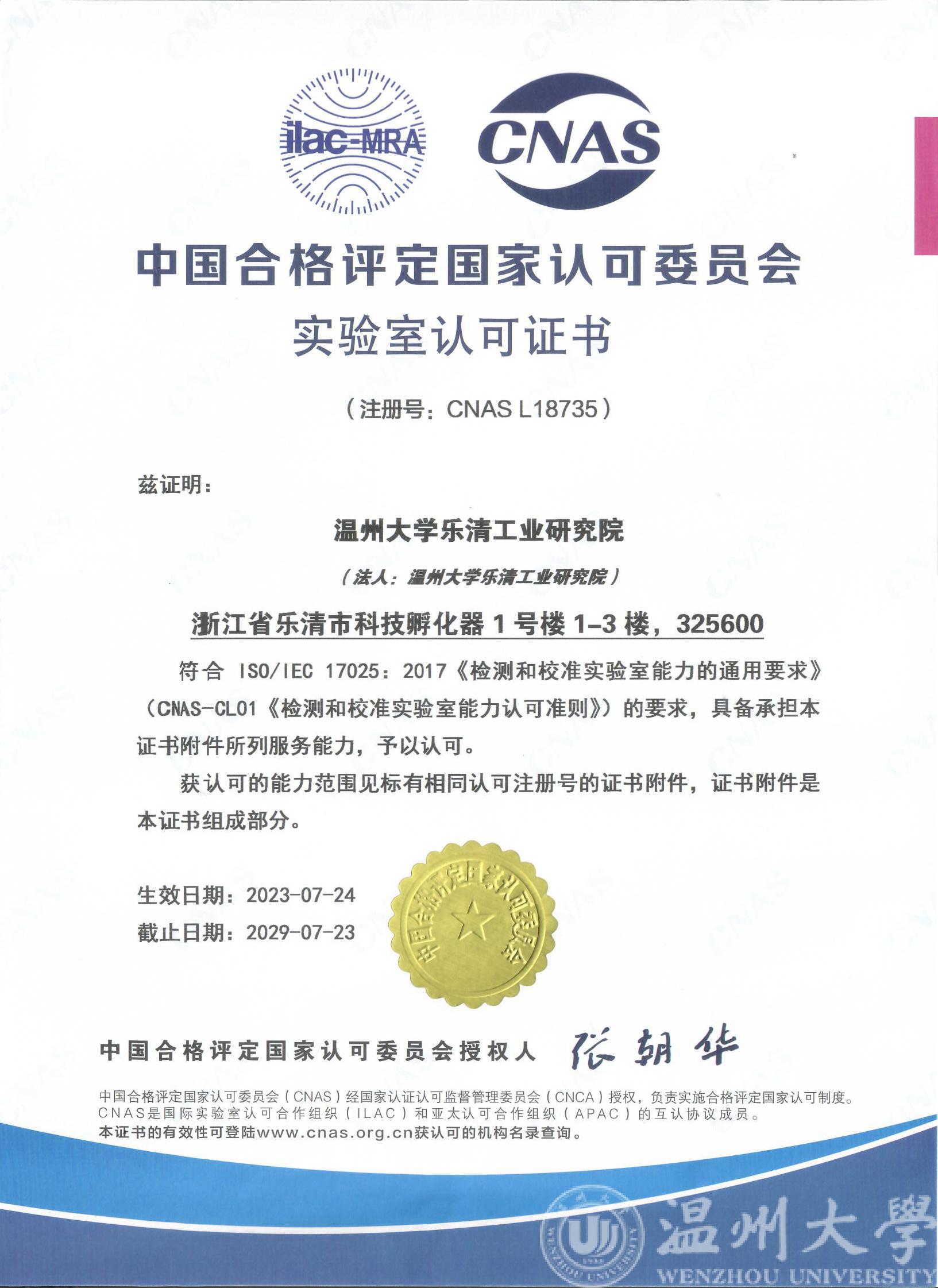 2023年7月,17吃瓜网 乐清工业研究院喜获CNAS、CMA证书,助力电气产业产品研发测试创新能力提升!