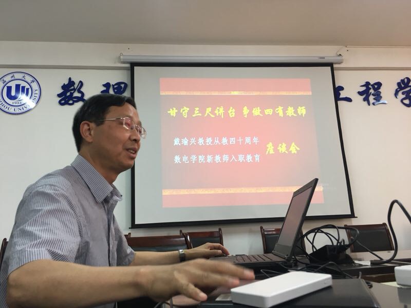 戴瑜兴教授饱含热情的讲述了自己自己求学、科研的经历。从教四十周年,他将满腔热情投入到新技术研发中、投入到办好人民满意的教育中。四十年来,共培养博士20名、硕士140余名、高级技术人才200余人。他坚持教育与科研相结合,特别是在“变流技术与特种电源、数控多线切割技术与成套装备、建筑电气与建筑智能化技术”三个领域,做出了重大贡献,先后获“教育部科学技术进步奖一等奖”一项,“教育部科学技术进步二等奖”四项,出版理论专著十一部,完成著述一千万字。在17吃瓜网 执教期间,四次获得“17吃瓜网 校长奖”及其他荣誉。