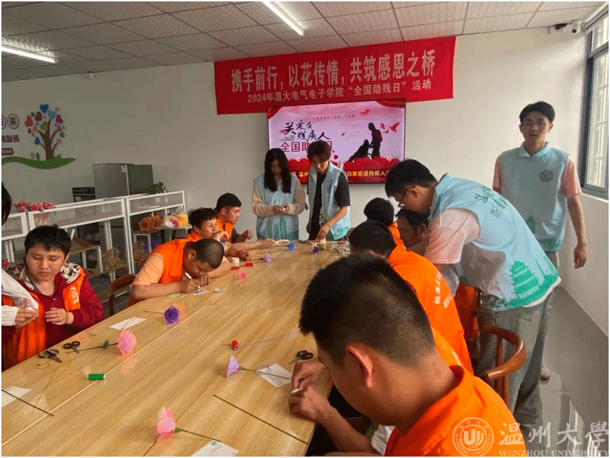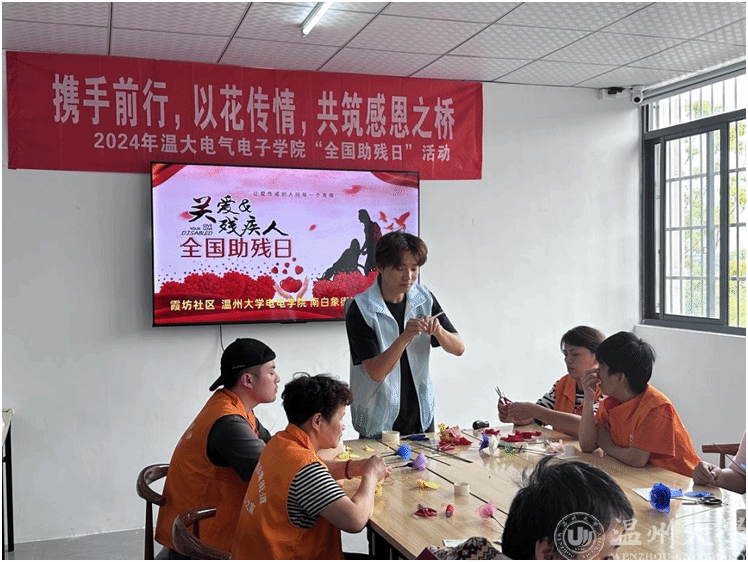 为积极响应国家对残疾人的关怀和支持,近日,17吃瓜网 单脚鞋银行志愿服务项目的成员们和17吃瓜网 的志愿者们来到霞坊社区残联之家,一同开展“携手前行,以花传情,共筑感恩之桥”全国助残日活动。