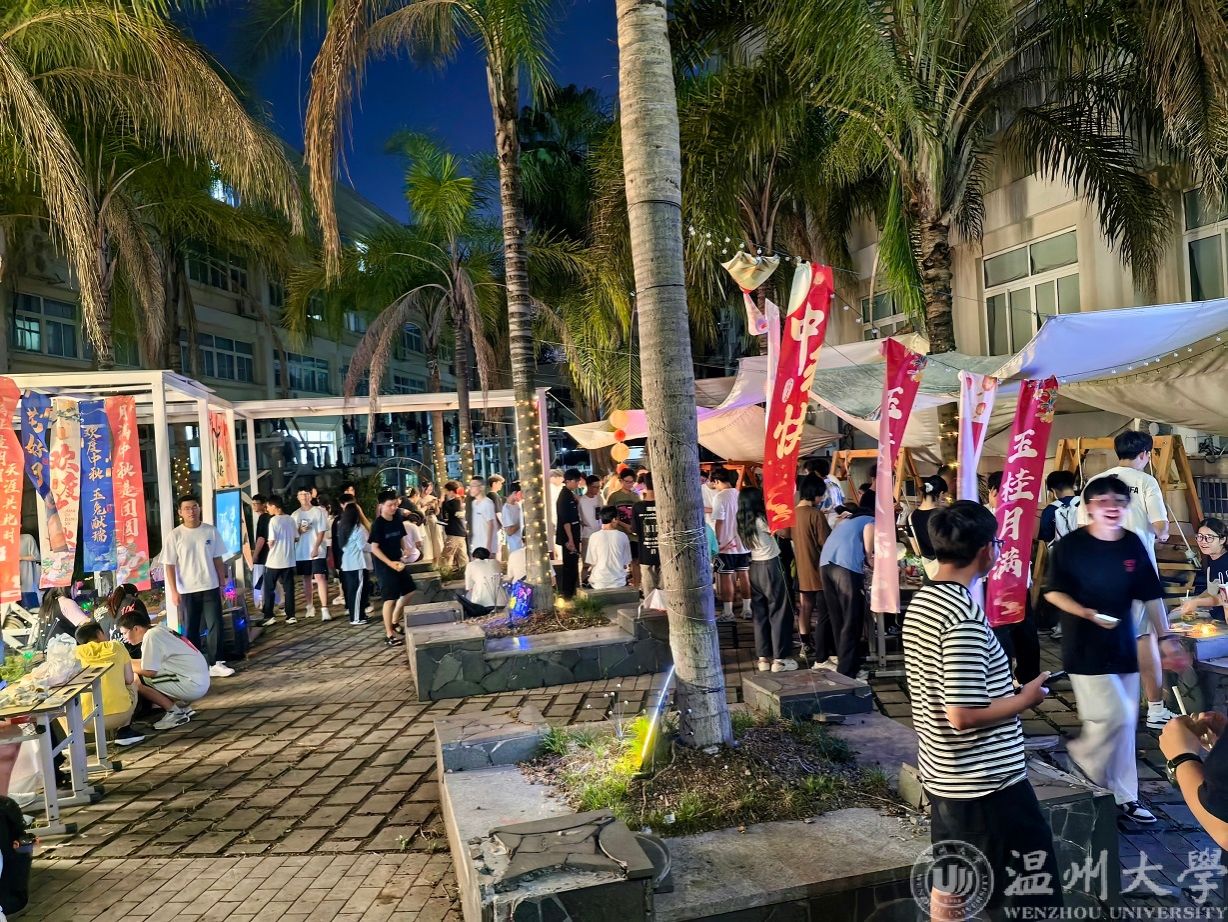 晚会现场布置得既传统又不失现代感,一盏盏精心制作的花灯璀璨夺目,挂布上绘制的传统图案与月光交相辉映,而各式月饼的香气更是弥漫在整个空间,营造出一片浓浓的节日景象。活动不仅设置了做花灯、猜灯谜等传统互动环节,还特别引入了制作漆扇与投壶等古代雅趣,让学子们在动手实践中近距离感受传统文化的魅力。
