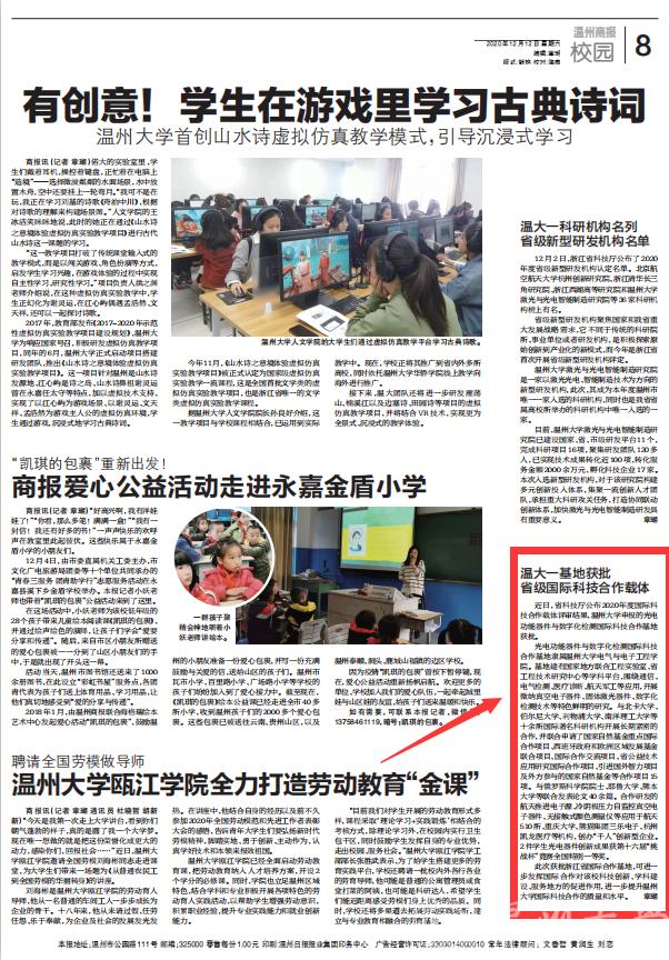 近日,省科技厅公布2020年度国际科技合作载体评审结果,17吃瓜网 申报的光电功能器件与数字化检测国际科技合作基地获批。