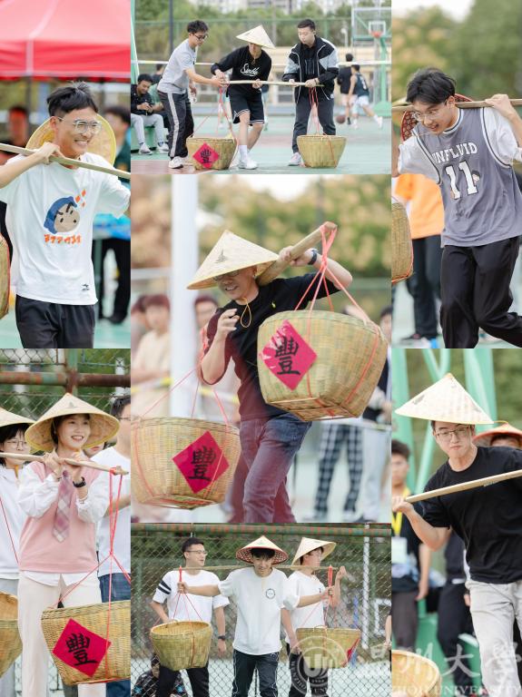 篮球场变身耕田,师生们在“自留地”上又快又准地将“秧苗”插入“田地”。大家在运动项目中体验农耕文化,感受劳动艰辛。