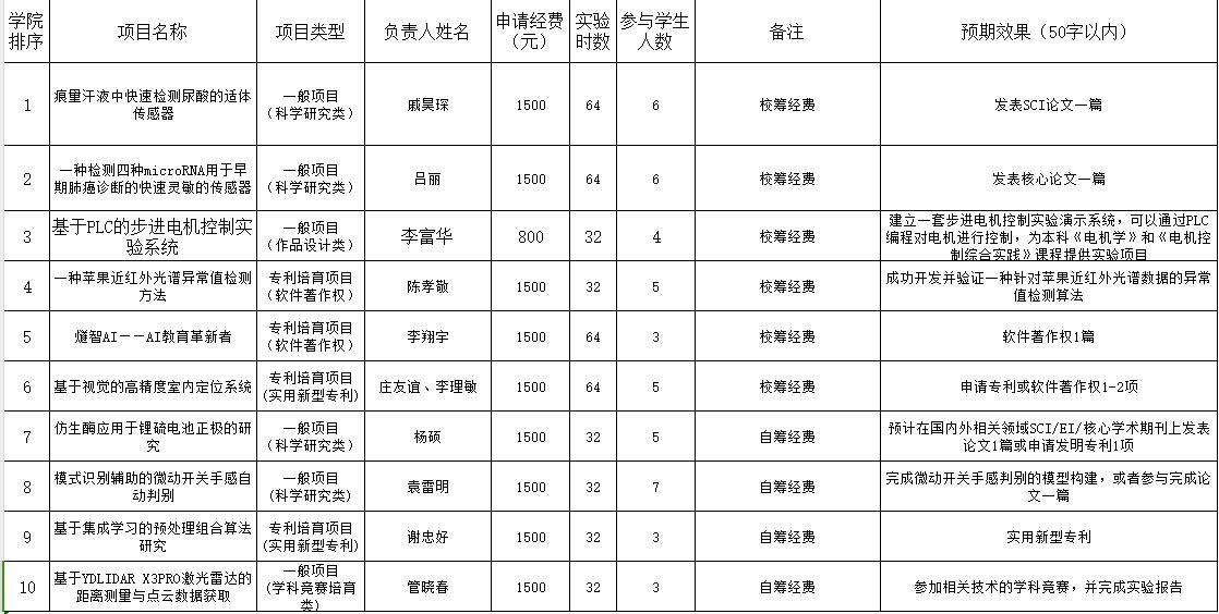 根据《17吃瓜网 本科教学实验室开放项目管理办法》(温大行政发(2022)55号)和《关于开展2024年度17吃瓜网 实验室开放项目申报工作的通知》的精神,经学院的专家评审,现将2024年度实验室开放项目申报结果予以公示,公示至6月23日。如有疑问,请及时与教学科联系,联系人:张霞,联系电话:86689020。