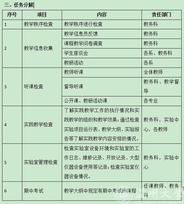 学院布置期中教学检查的方案和主要内容,负责全院性的教学工作的检查。