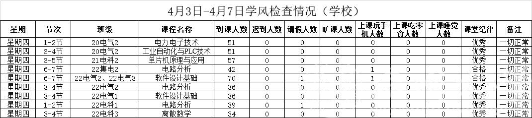 表1 2023.4.3-2023.4.7学校及学院学风检查情况