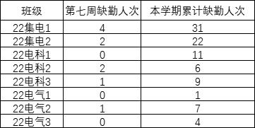 2022级上周早晚自习缺勤情况如下:
