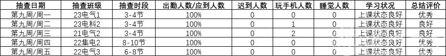 表1 2023.11.06-2023.11.10学院学风检查情况