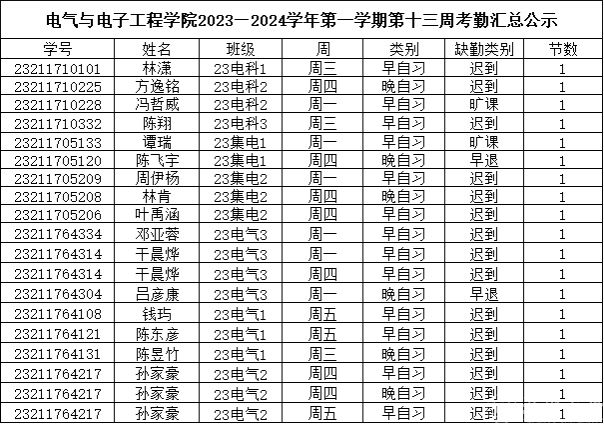 2023年11月27日至12月3日(十二周),学校对本院学风检查情况反映如下: