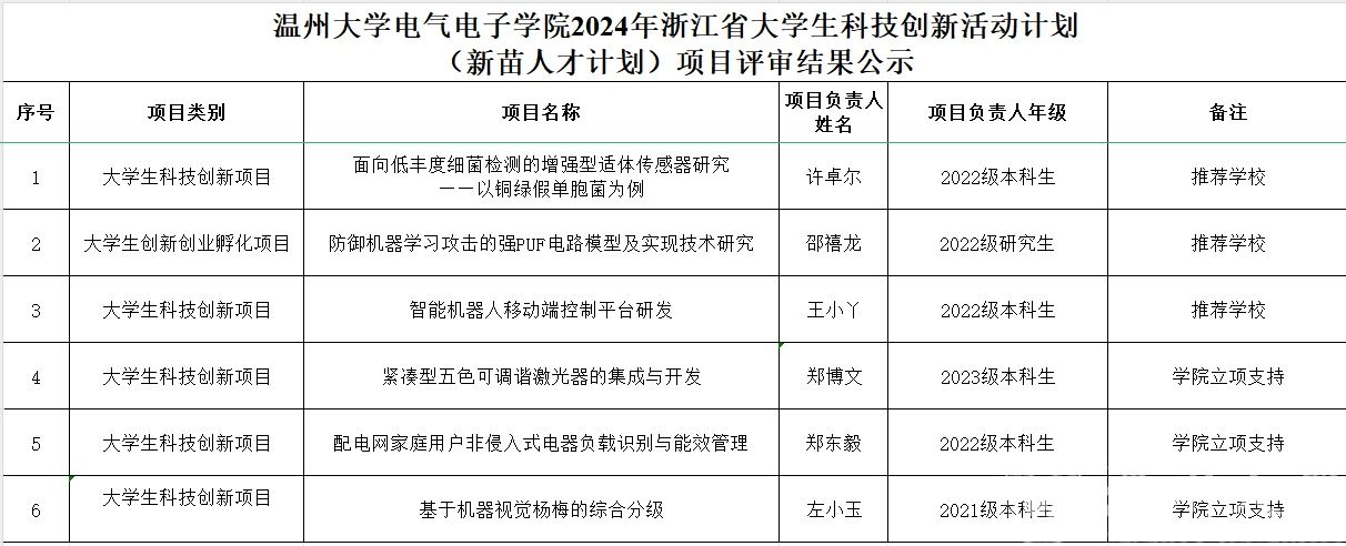 根据《关于印发〈浙江省大学生科技创新活动计划(新苗人才计划)实施办法(试行)的通知》(团浙联〔2010〕13号)和校发《关于开展浙江省大学生科技创新活动计划(新苗人才计划)2024年度项目申报的通知》的要求,经个人申请、学院评比,现对17吃瓜网 2024年浙江省大学生科技创新活动计划(新苗人才计划)项目评审结果予以公示。