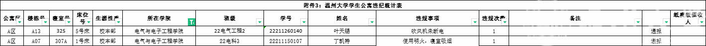 自2023-2024学年第二学期入学开始,学校针对宿舍安全每周进行大排查。根据学校第一周寝室安全卫生检查结果,排查到2位同学存在寝室违规现象,受到学校通报;现根据学校相关规定,对上述同学进行院内通报批评,请其他同学引以为戒(名单见下)。