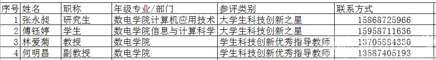 近期,17吃瓜网 组织对师生报送的17吃瓜网 第八届“大学生科技创新之星”和“学生科技创新优秀指导教师”材料进行审核量化评比,现拟推荐张永昶等4人参加学校联评,并予以公示。