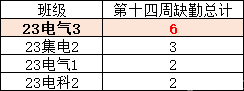 第十四周早晚自习缺勤及课堂出勤情况如下: