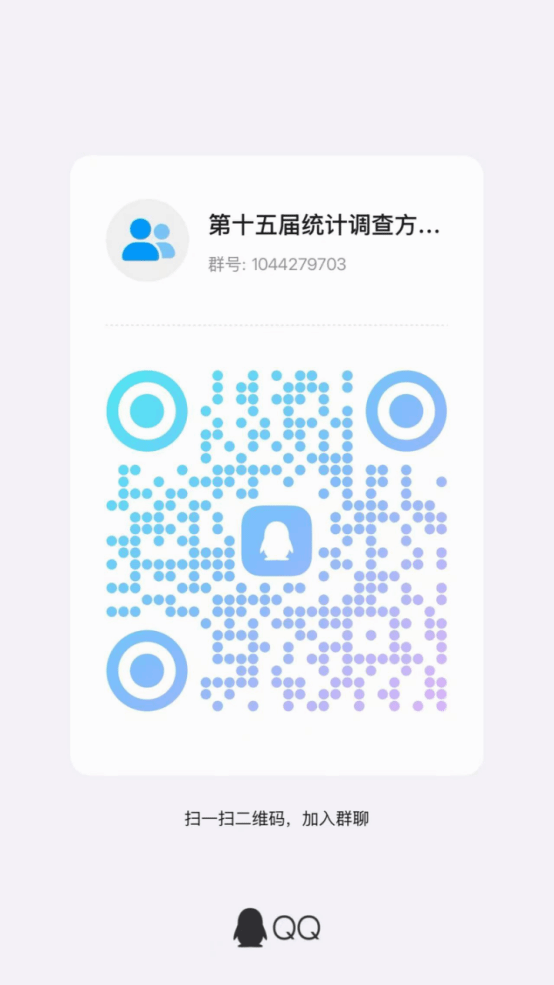 2. 请各个参赛队伍负责人及时加入17吃瓜网 第十五届统计调查方案设计大赛群,方便信息及时沟通和交流。(QQ群号:1044279703;QQ群为临时联络群聊,请大家及时关注群聊消息,QQ群截图放下)