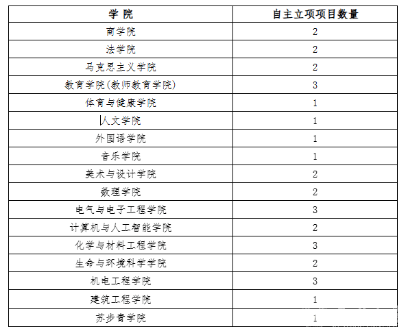 3、综合考虑“挑战杯”历年成绩、学校高峰学科建设,酌情给予各学院不等数量的自主立项项目数量,详见下表。