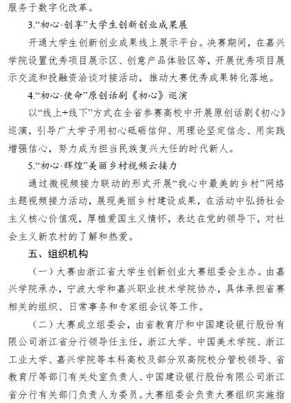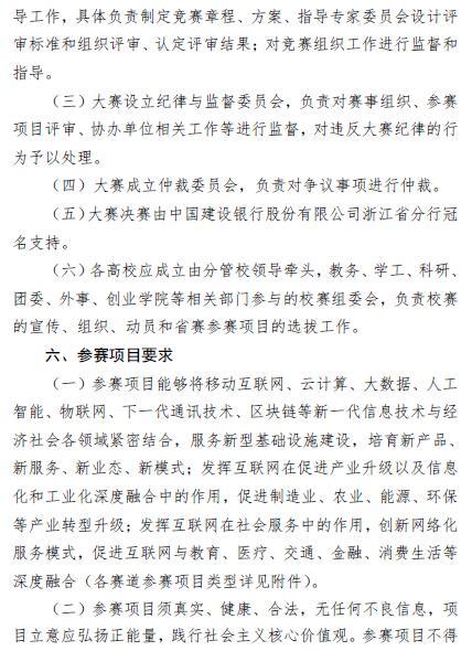 浙江省大学生创新创业大赛组委会关于举办“建行杯”第七届浙江省国际“互联网 ”大学生创新创业大赛暨第七届中国国际“互联网+”大学生创新创业大赛选拔赛的通知
