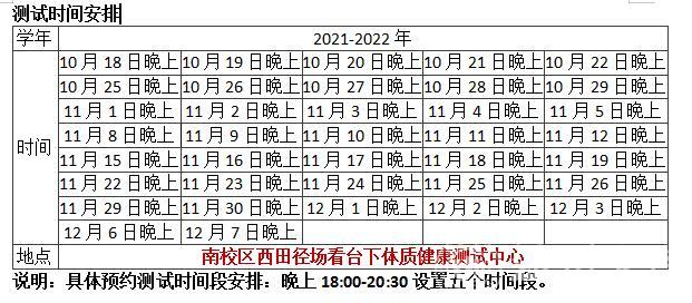 参加2021-2022学年测试的同学请登录“我的温大”APP“体质测试”应用“体质测试预约”,根据系统设置的时间段选择相应的测试时间进行测试,未预约的同学将无法进行体质测试,最终导致没有测试成绩,直接影响毕业。