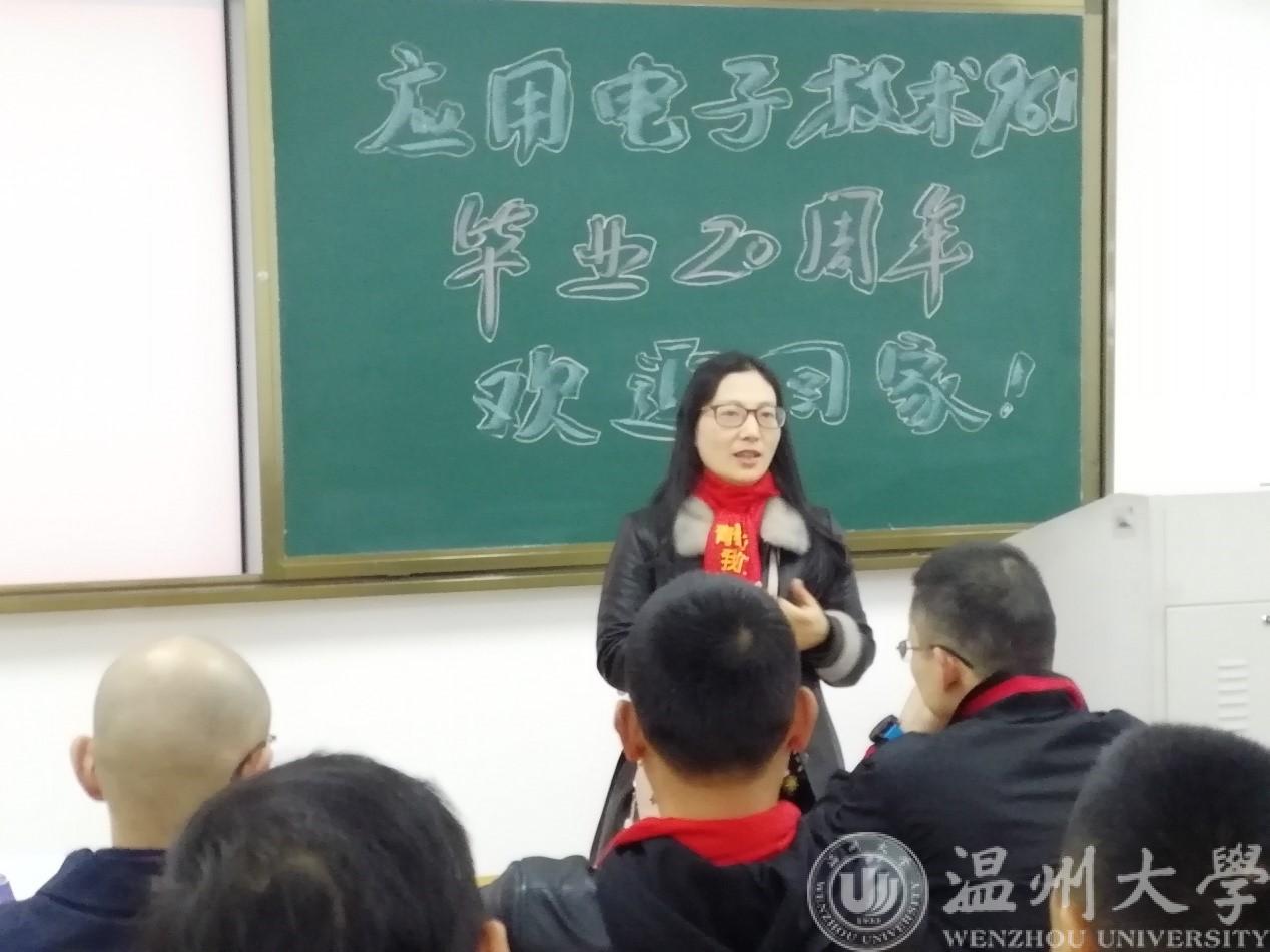 2019年12月28日,96级应用电子技术1班近30名校友返校举行毕业20周年同学会。学院党委副书记曾蓓蕾、曾经的老师周荣老师热情地接待了他们。