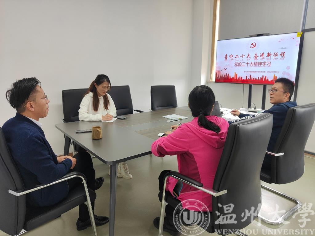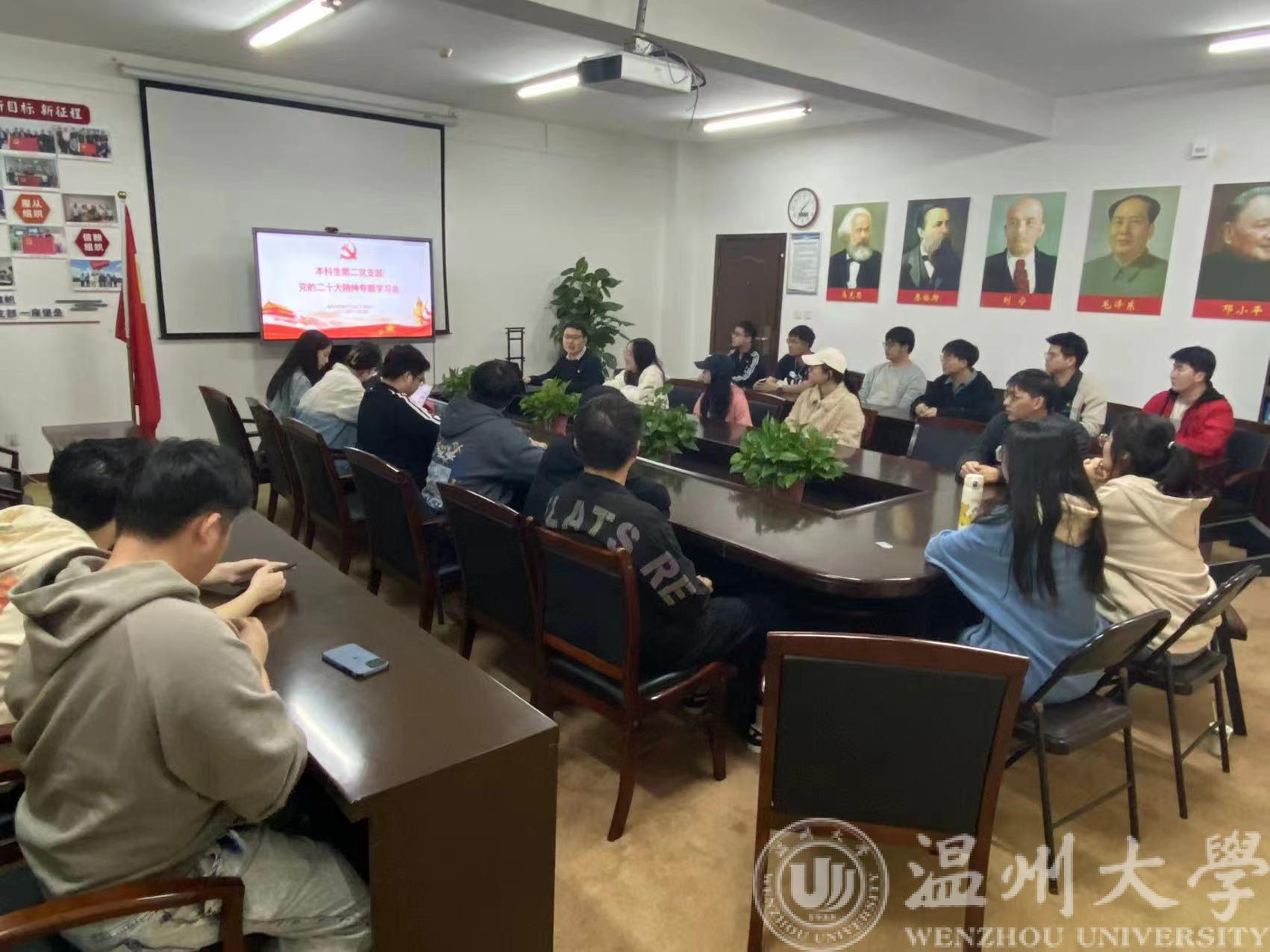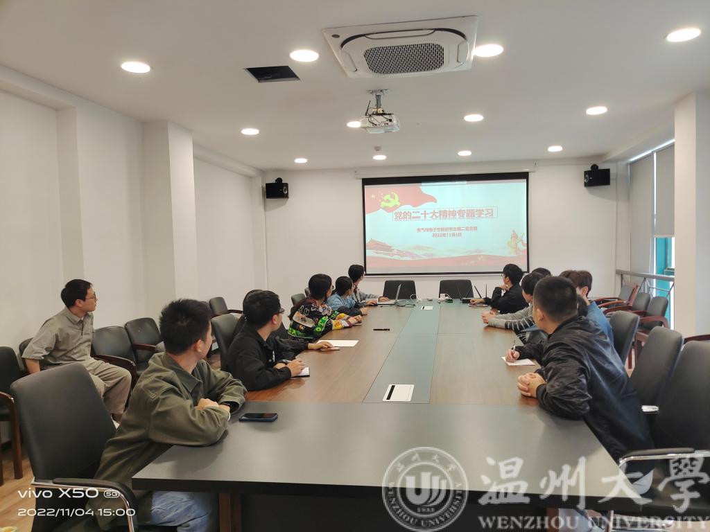 为深入学习领会党的二十大精神,11月4日下午,研究生第二党支部于乐清工业研究院三楼开展党的二十大精神专题学习会。支部书记吴晨茜通过对党的二十大的主题和主要成果、新时代10年的伟大变革、中国式现代化、全面建设社会主义现代化国家的目标任务和坚持党的全面领导等方面对党的二十大精神进行了系统宣讲和深入阐释,传达学习贯彻党的二十大精神的重要意义。参会人员一致认为:作为新时代研究生,首先要把党的二十大精神贯彻落实到生活学习工作的各个方面,并且要坚定不移听党话、跟党走,怀抱梦想又脚踏实地,敢想敢为又善作善成,立志做有理想、敢担当、能吃苦、肯奋斗的新时代好青年,让青春在全面建设社会主义现代化国家的火热实践中绽放绚丽之花。