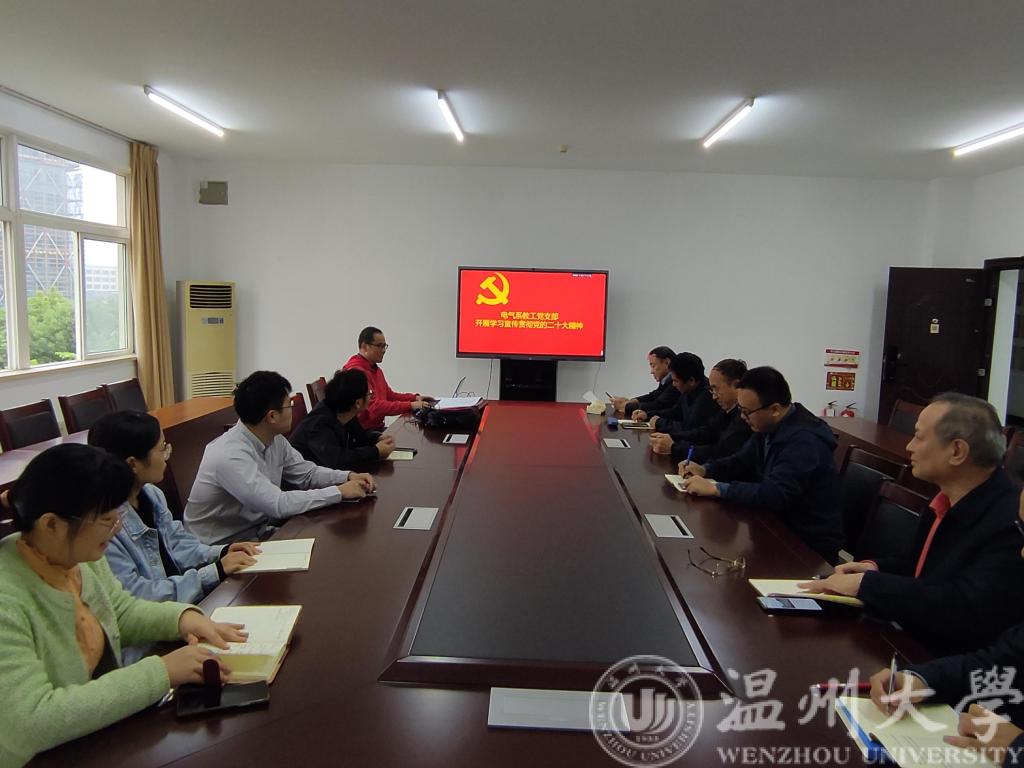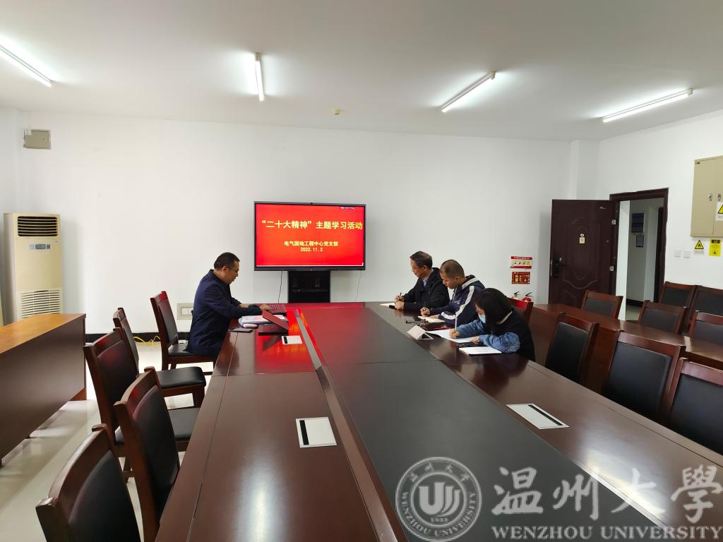 11月2日下午,电气国地工程中心党支部按照学院党委的部署要求,在1-B411会议室开展了“二十大精神”主题学习活动。支部书记曾国强首先分条目领读《中共中央关于认真学习宣传贯彻党的二十大精神的决定》,重点强调了充分认识学习宣传贯彻党的二十大精神的重大意义,带领支部成员学习了“全面准确学习领会党的二十大精神”中的9条主要内容。随后,支部成员进行学习心得交流。电气数字化设计技术国家地方联合工程研究中心主任戴瑜兴教授表示:“国地工程中心一定提高政治站位,要坚定地拥护和执行中共中央和浙江省委有关学习宣传贯彻二十大精神的决定和方案!”。支部成员胡文、章纯、曾国强也表示近期要学深悟透二十大精神,在日常工作中落实好二十大精神。