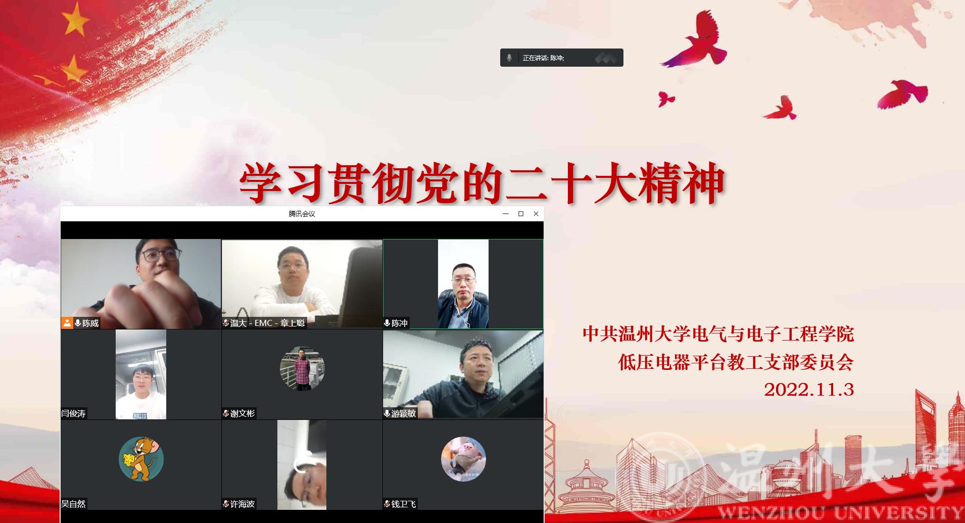 11月3日上午,低压电器平台党支部组织召开党的二十大精神专题线上学习会,会议由支部书记陈威主持。支部书记陈威首先给全体党员与列席的党外人士回顾了党的二十大会议内容,并带领与会人员学习了习近平同志代表十九届中央委员会所作的《高举中国特色社会主义伟大旗帜,为全面建设社会主义现代化国家而团结奋斗》的报告和《中国共产党章程(修正案)》增写内容。会上,与会党员还就近期学习与工作情况,依次谈了学习心得和体会,并共同观看了《中国共产党国际形象网宣片》。
