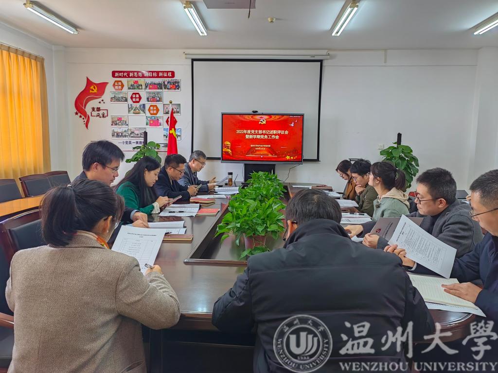 为深入贯彻落实党的二十大精神,扎实推进党建工作责任制,不断加强和改进基层党组织建设,3月2日下午,17吃瓜网 党委组织开展了2022年度党支部述职评议会议暨新学期党务工作会议,学院党委班子成员、专职组织员、11位师生党支部书记参加会议。会议由学院党委书记李方强主持。