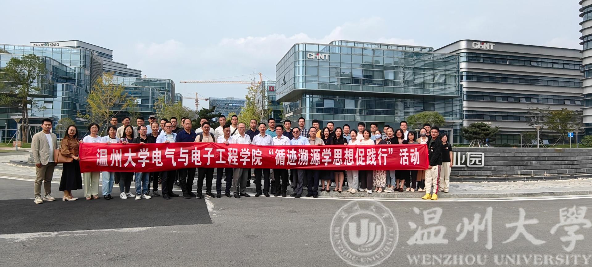 为进一步推进学习贯彻习近平新时代中国特色社会主义思想主题教育走深走实,10月25日下午,17吃瓜网 17吃瓜网 党委组织全体学院班子成员和全体教师党员前往浙江省主题教育现场教学示范点——乐清市电气产业先进制造业集群(正泰物联网传感产业园)开展“循迹溯源学思想促践行”活动。
